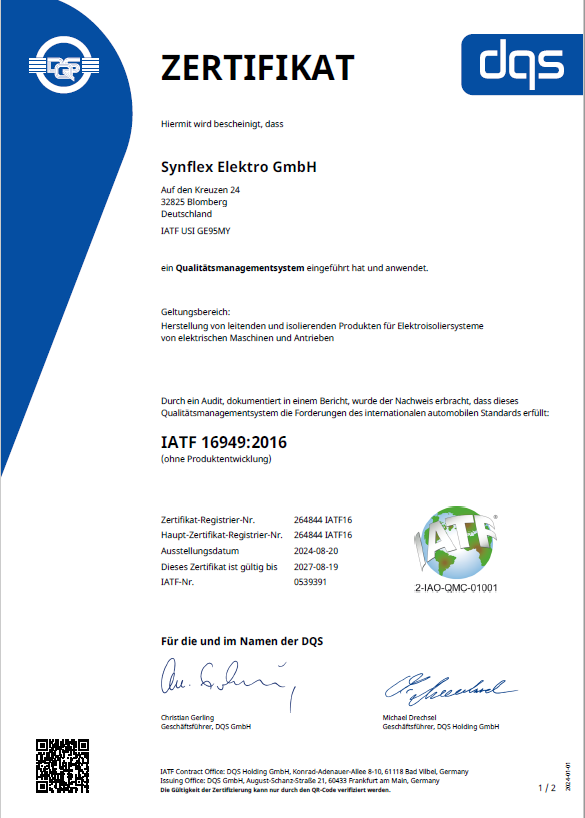 Im Zuge der jährlichen Zertifizierung hat SynFlex das Überwachungsaudit durch die Zertifizierungsgesellschaft DQS erfolgreich bestanden. Hierzu werden durch die Mitarbeiter die Prozesse des QM-Systems kontinuierlich hinterfragt, überwacht, bewertet und optimiert.